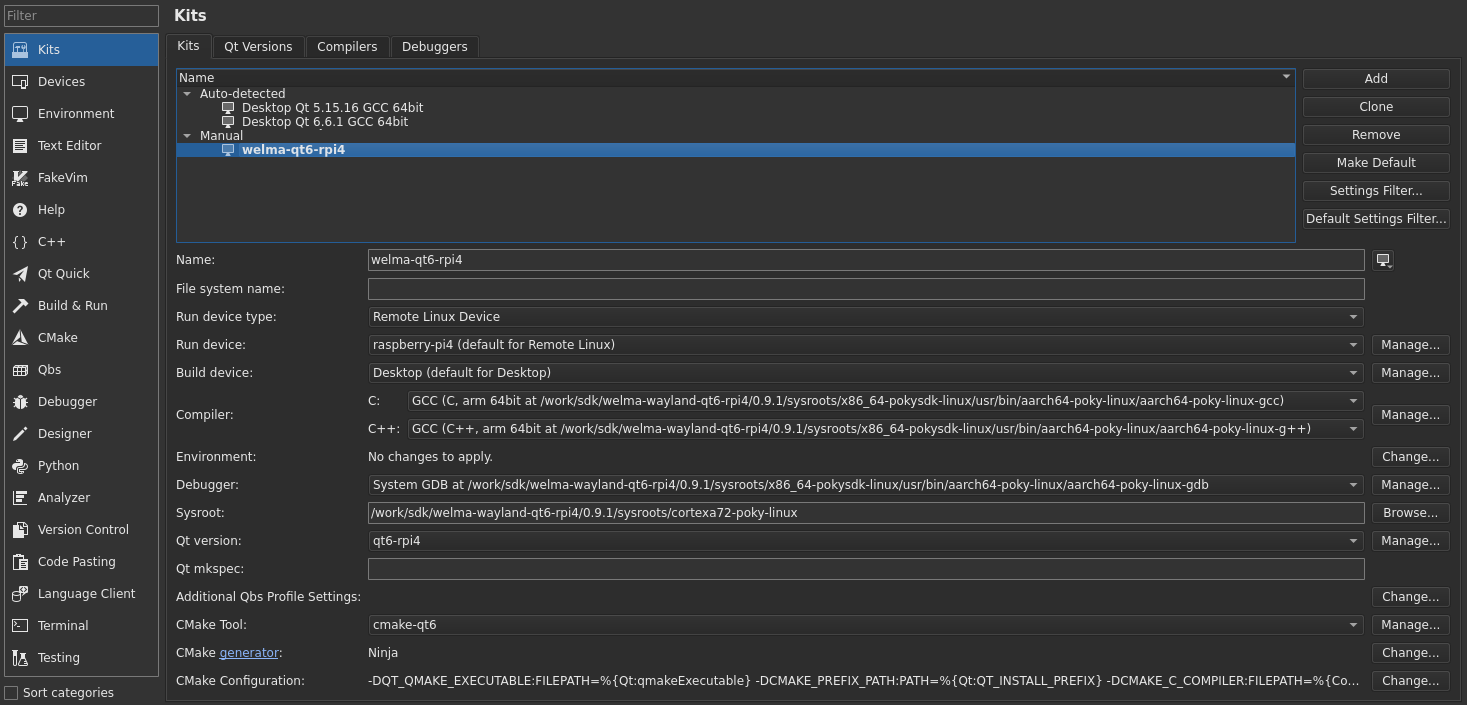 This guide is based on Qt Creator version 12.0.1 and has been tested using a raspberry pi 4B and an stm32mp15.