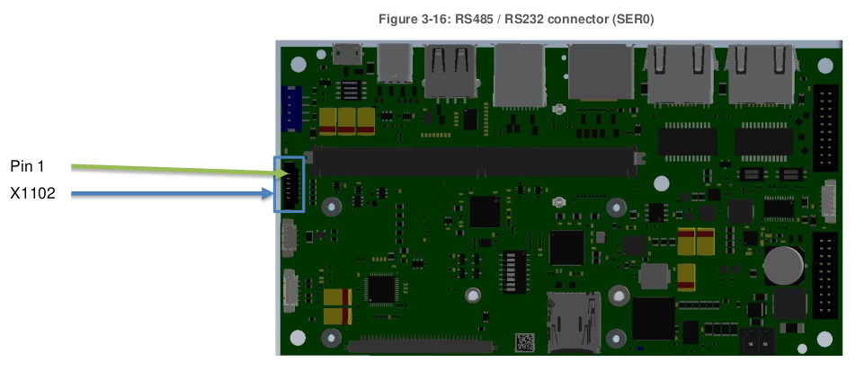 Connect your PC to the SER0 RS232 interface on connector X1102 (compatible 1.8 V). Bit rate: 115200 baud.