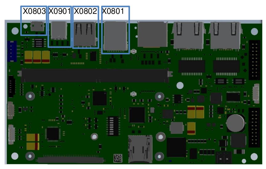Connect your PC to the SER0 RS232 interface on connector X1102 (compatible 1.8 V). Bit rate: 115200 baud.